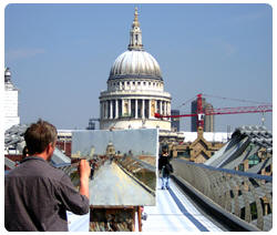 La mejor visión del Millenium Bridge es desde St Paul, o de la opuesta  Tate Modern, desde donde este bloque de acero, de 4 metros de ancho y 330 de largo, aparece como animado por la linfa vital del va ven peatonal, a tal punto que delante de los ojos parece a una de las tantas obras expuestas en la colección moderna de arte moderna de la cercana  Tate. Absolutamente para no perderse!